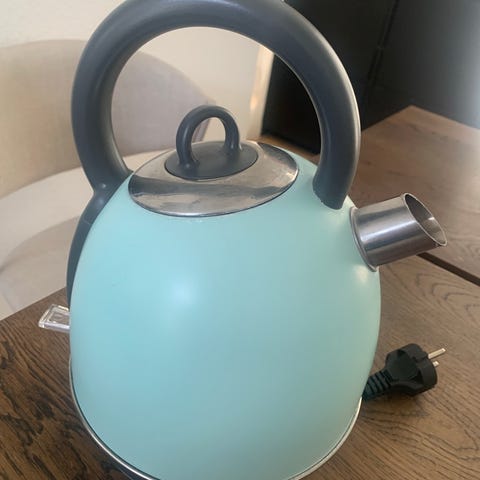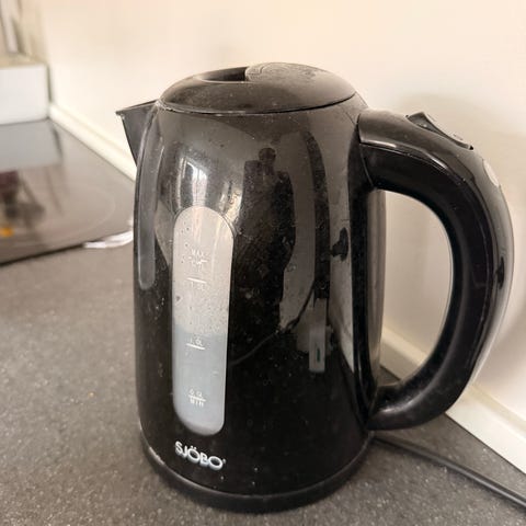 Russell Hobbs glas elkedel med sort håndtag og metaldetaljer. Elkedlen har en gennemsigtig glaskrop, der gør det muligt at se vandets niveau. Designet til nem betjening og hurtig opvarmning af vand.