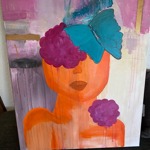 Maleri på lærred i størrelse ca. 80 x 60 cm. Sælges for kun 80 kr. Den er lavet af min datter ifm. sin uddannelse. Håber I kan hjælpe min datter med at få den solgt og få penge til at færdiggøre sin uddannelse.