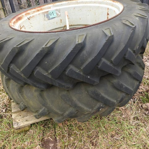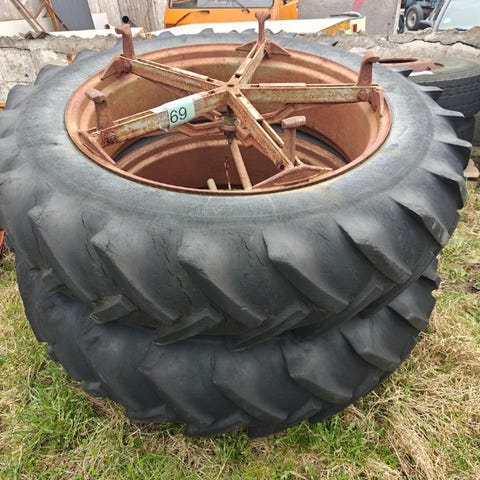 1 Sæt tvillingehjul. 5-armet. Dæk: 16.9 x 38.