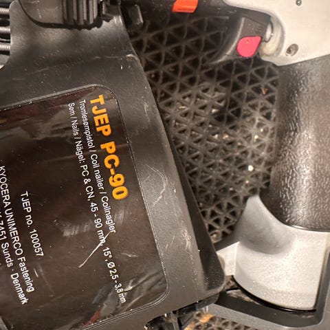 Funktioner: Udstyret med justerbar slagdybde, "no-mark" sikring for at undgå mærker i træet, og en tomskudslås.