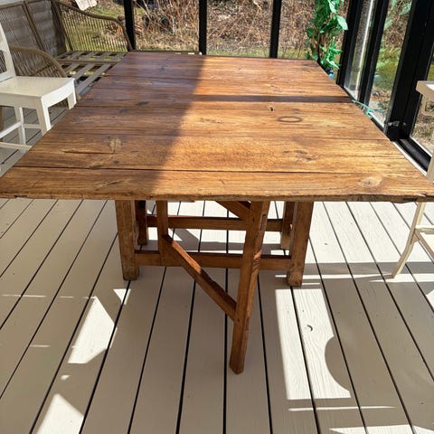 Kan stå foldet sammen og slåes ud og rumme mange spisende.