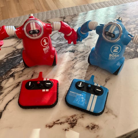 To sæt robotter med fjernbetjening til leg. Sælges sammen for 250 kr. eller som par for 150 kr. pr. par.