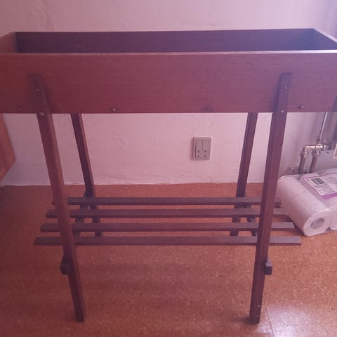 Arne Wahl Iversen blomsterbord i Teak. Metal blomsterbeholder mangler.