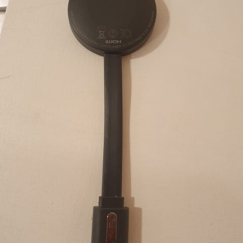 Google Chromecast medieafspiller i sort. Enheden tilsluttes tv’et via HDMI og får strøm via USB-kabel. Med Chromecast kan indhold fra kompatible enheder som smartphone, tablet eller computer sendes trådløst til tv-skærmen over Wi-Fi. Velegnet til streaming af video, musik og visning af billeder fra understøttede apps og tjenester. Leveres med Chromecast-enhed, USB-strømkabel og original emballage, hvis vist på billedet.