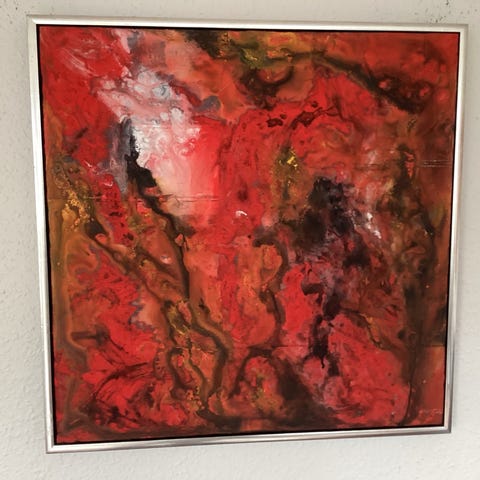 Rund abstrakt vægdekoration maleri i flerfarvede pasteller og blå nuancer sælges for kun 35 kr. Den er lavet af min datter ifm. sin uddannelse. Håber I kan hjælpe min datter med at få den solgt og få penge til at færdiggøre sin uddannelse. Str. er ca. 20 cm.