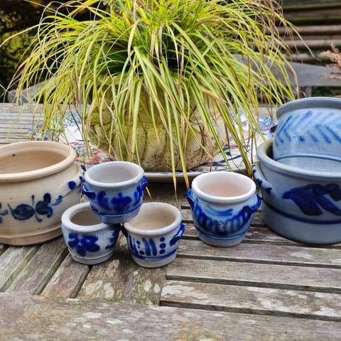7 stk mini syltekrukke krukke saltkar æggebæger keramikkrukke
