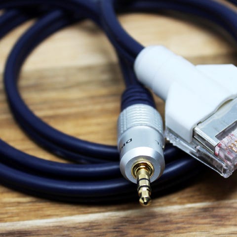 Oversat: Minijack til Beolab Line In (via Powerlink) - ét kabel forsyner to højttaler med hver sin kanal - længde: 5 meter