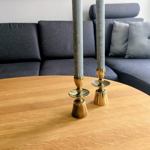 2 ens lysestager i messing