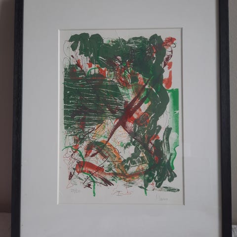 Henrik Have litografi kunstplakat med abstrakt motiv i gule, røde og grå nuancer. Værket fremstår indrammet med lys ramme og hvid passepartout. Nummereret 3/200 i nederste venstre hjørne. 78 x 95 cm.