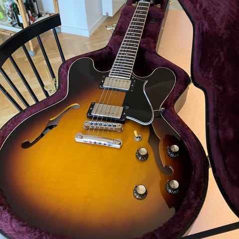 Oprydning: en semi-hollow fra øverste hylde. Bemærk! Denne er IKKE en almindelig Epiphone. Bygget med samme Gibson specifikationer i samarbejde med Gibson Custom Shop. Det vil sige samme elektronik (med de berømte Custombucker pickups). Man kommer ikke tættere på en ægte Gibson. Fuldstændig som ny, kun 2 år gammel med egen kasse. Sendes ikke. Fast pris. Se link for specs: