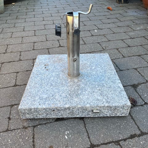 Derby granit parasolfod med hjul 25 kg fra Altanbutikken. Købt sidste sæson.