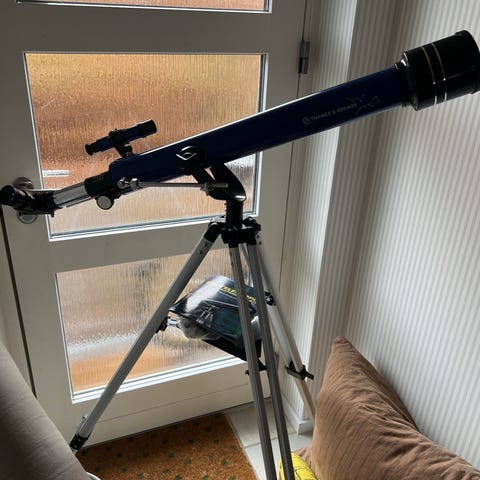 70AZ 400mm teleskop med stativ og smartphone-holder. Refraktorteleskop med 70 mm objektivåbning og 400 mm brændvidde, monteret på højdejusterbart aluminiumsstativ. Leveres med søgerkikkert og holder til smartphone til observation og evt. fotografering gennem okularet. Velegnet til observation af nattehimmel og fjerne objekter på jorden.