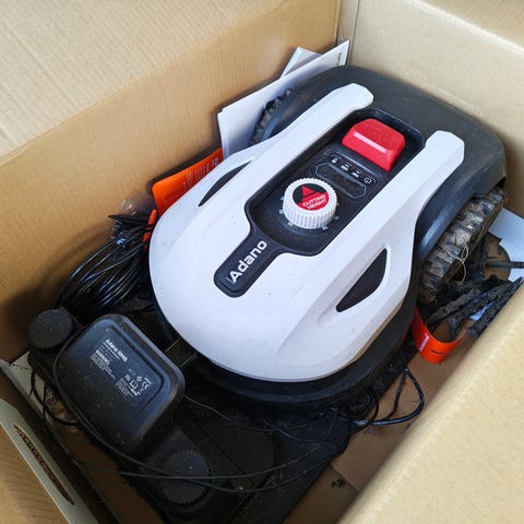 Adano rm6 kun brugt en sæson så stadig 2 års garanti tilbage på den, der medfølger installationskit fra Husqvarna og en okey garage. Kan måske sendes men uden garagen.
