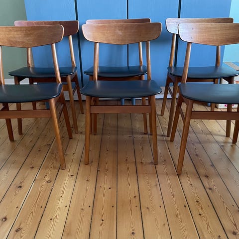 🪑 6 stk. Dansk snedkerlavede retro spisebordsstole – massiv træ