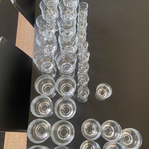 9 ølglas, 11 sjusglas og 12 snapseglas no 5 fra holmegaard