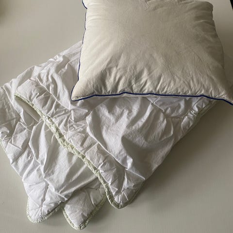 Pude med fyld af fjer og dun