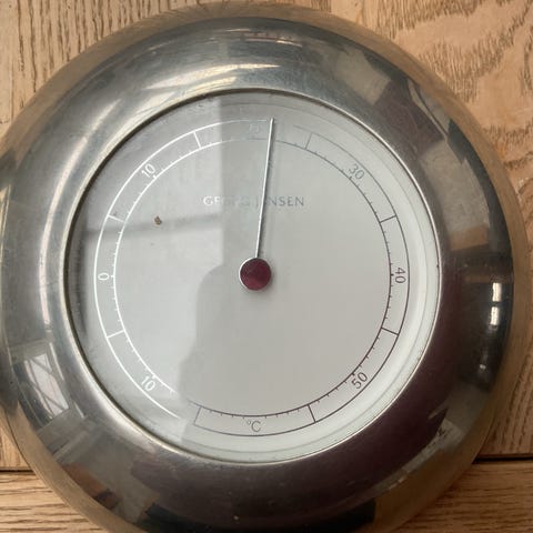 Georg Jensen vægur, barometer og temperatur . Sættet består af tre runde 14 cm og 3 cm høj.