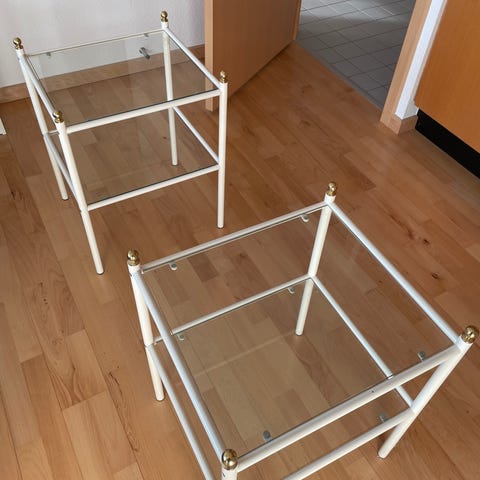 To smukke spejlglasborde med sort jernstel, (vintage spejlglas-look) købt hos Orangerie Interior i Espergærde. Mål: 40x 40x 71 cm, justerbare ben. Sælges, da der ikke er plads i vores nye hjem. Pris stk. kr. 500,- eller samlet kr. 800,-
