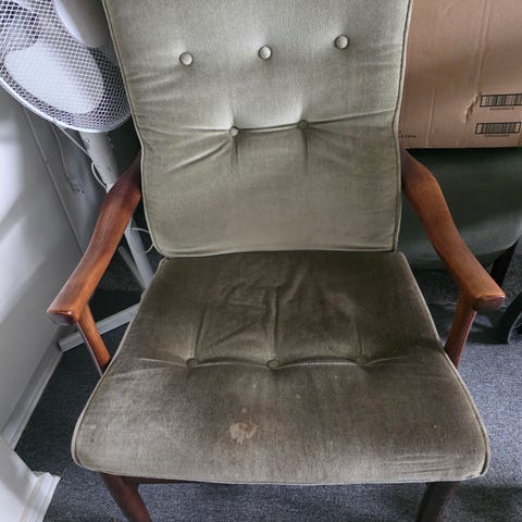 Mindre lænestol - støvet grøn velour