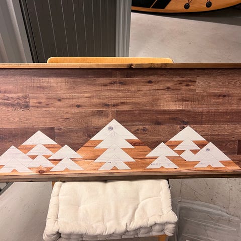 Væg dekration, Fjeld/skov hytte i 3D, i træ. træramme helt i gennemgående udskåret træ. med ildsted meget gammelt. ellers kom med et seriøst bud.