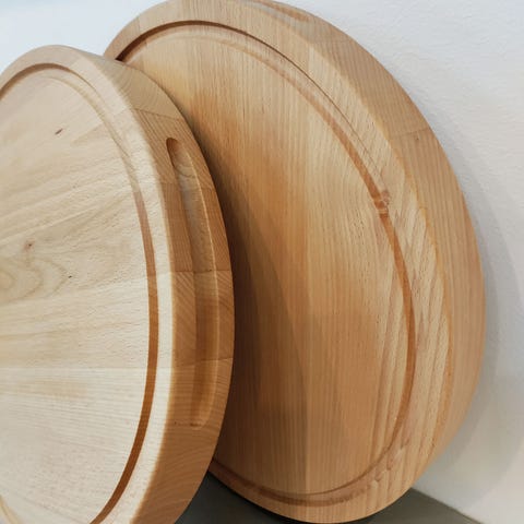 Helt nyt smukt rundt træ pizza bræt med inddeling og 3 håndtag