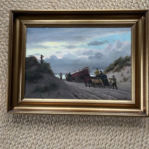 Smukt originalt værk af lokal kunstner ernst B. Signeret dateret og betitlet på bagsiden "en tidlig morgen skagen 1973"