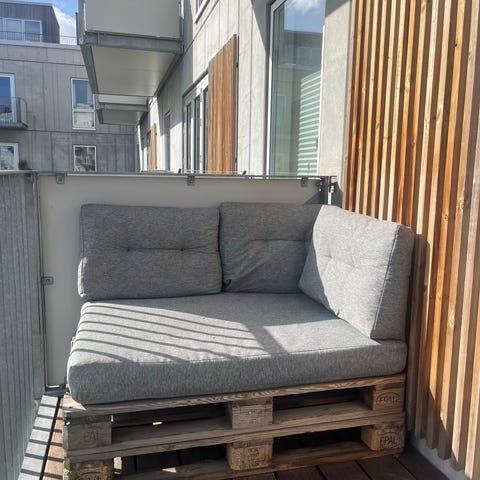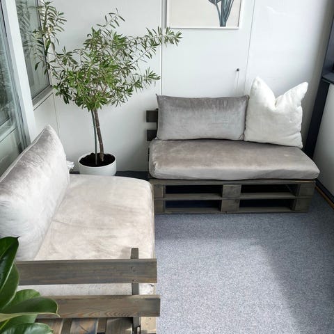 Derudover 4 puder med også. Samlet pris paller, hynder og puder!!