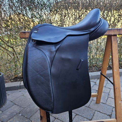 Sadlen har indvendige knæstøtter, fin uldstopning og bred sadelkammer.