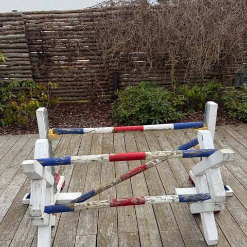 Super flotte helt nye springstøtter og springbomme til fx springbane i haven til kæphest, kaninhop eller agility.