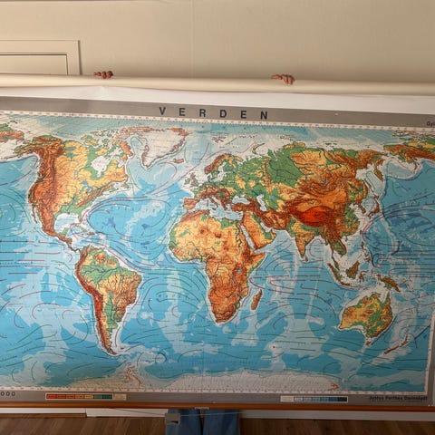 Gammelt skolekort, verdenskort, fra en skole på Lolland.