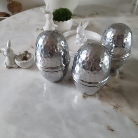 Super dekorativt og eksklusivt Mega silver egg fra Summerbird. Over 30 cm højt smukt “sølvæg” fra Summerbird (uden indhold). Består af låg (ægets overdel) og bund (ægets underdel). Kan bruges både som eksklusiv påskepynt og som opbevaring.