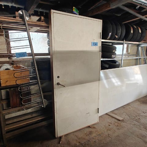 Dør m/karm. Mål (incl karm): H: 210 cm. B: 99 cm. D: 13 cm . Brugt.