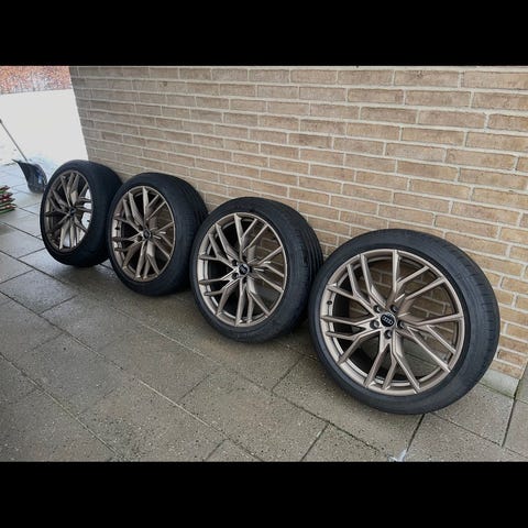 Audi Q4 følger med kvalitets dæk , aldrig været brugt . Fælger bilen er født med , fik bilen november 2025 så har haft vinter fælgene på med det samme.. de har aldrig været brugt ,kun da bilen blev transporteret fra Tyskland på en lastvogn .