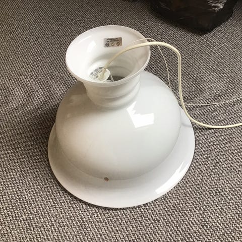 Lille hvid kropendel i glas fra Holmegaard. Fin brugt stand. Ca. 24 cm i diameter og 21 cm i højden.