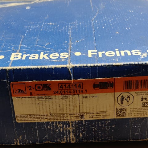Mercedes-Benz originale bremseskiver 342mm til foraksel, ventilerede til bl.a. c 205 Amg og E model fra 2014-2021 Sættet består af to bremseskiver, flotte som på billederne de kører ca 70,000km endnu , langt til min mål pris pr stk 999kr ny pris ca 2600kr fremstår som grå grundcoatet forsvinder ved kørsel de er ventilerede 32mm skiver med gennemgående huller til forbedret varmeafledning. Bliver skiftet fordi bremsesystem bliver ombygget Velegnet som udskiftningsdele til kompatible Mercedes-Benz modeller, herunder modeller i 205- og 213-serien samt C-klasse W205 fra ca. 2014 og frem, samt Sl model afhængigt af specifikationer. Varenummer kan ses på det viste skilt/billede og kan bruges til at kontrollere præcis kompatibilitet med bilens stelnummer hos forhandler eller værksted før montering. Spørgsmål Tfl 26272894 tak