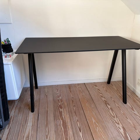 Bordplade lavet af laminat af høj kvalitet. Bordpladen er sort på den ene side (som vist) og hvid på bagsiden. Benene er fra Hay.