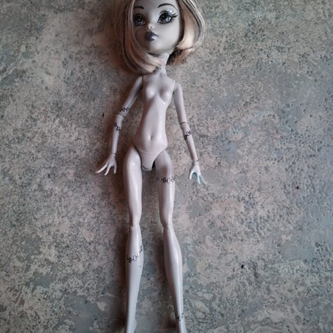 Monster High Skull Shores Black & White Frankie Stein-dukke. Har meget få brugspor, men er udover det I pæn stand og en smule sjælden.