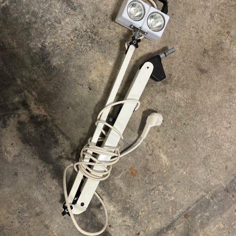 Blandet parti af bordlamper og arbejdslamper i forskellige modeller og farver. Lampene ligger samlet i en plastkasse og omfatter blandt andet justerbare lamper med arm samt reflektorlignende lamper. Flere af lamperne har synlige brugsspor og patina. hvor der ønskes ældre lamper Arkitektlampe evt film