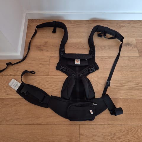 Ergobaby Omni 360 Cool Air Mesh Grey. Kan anvendes fra nyfødt, indsats ikke nødvendig. Købt fra ny og ikke brugt ret meget. Har lidt pletter fra barnevognen, se billede (ikke forsøgt fjernet). Ellers i god og pæn stand. Nypris 1600,-