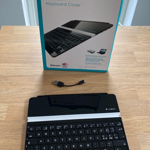 Logitech Ultrathin Keyboard Cover tastatur til iPad med Bluetooth i sølvfarvet design. Tastaturet fungerer som både beskyttende cover og tastatur til kompatible iPad‑modeller. Forbinder trådløst via Bluetooth. Ultratynd og let konstruktion, der klikkes fast på iPad’en. Integreret tastaturlayout til iPad med genvejstaster til blandt andet mediestyring og skærmstyring. Velegnet til brug af iPad til skrivning, noter og generelt arbejde, hvor der ønskes fysiske taster i stedet for skærmtastatur.