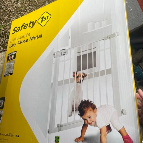 Hauck Open’n Stop sikkerhedsgitter i hvid.