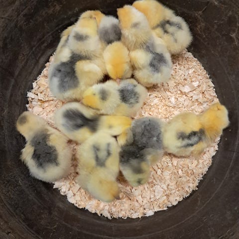 Daggamle kyllinger fra min flok af store Orpingtons i forskellige farver.