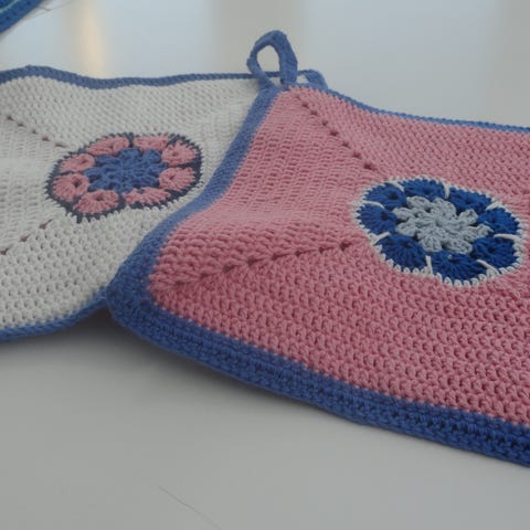 Grydelapper. 100% bomuld. Hæklede.