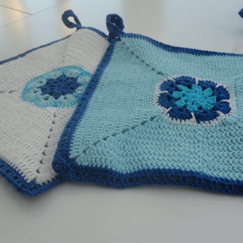 Grydelapper. 100% bomuld. Hæklede.