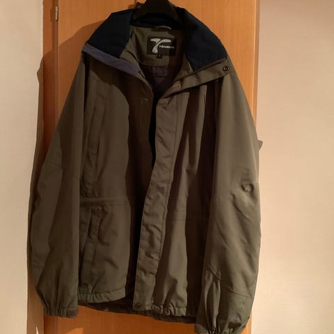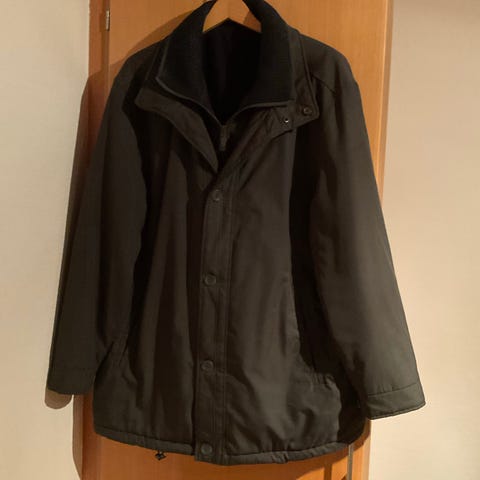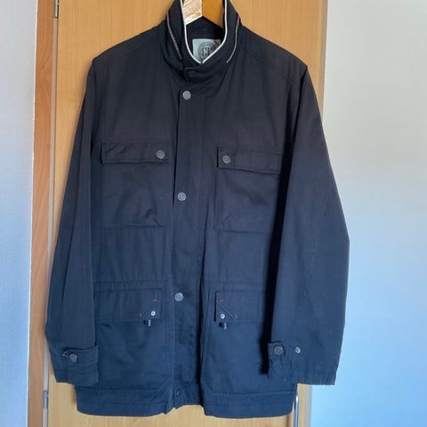 Lommer både ud- og indvendig. Kan modstå en let byge. Behagelig krave med strik. Vindfang i ærmerne