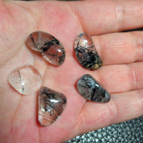 Krystaller, små hjerter i lys røgkvarts.