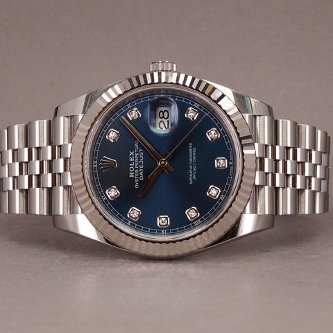 Rolex Datejust 41 herreur i stål med blå skive.