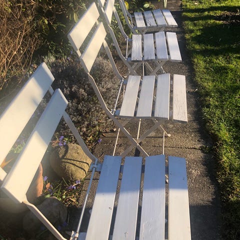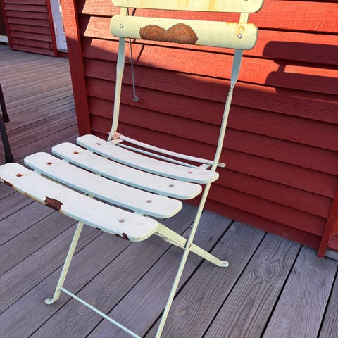 Sammenklappelig havestol i træ og metal.