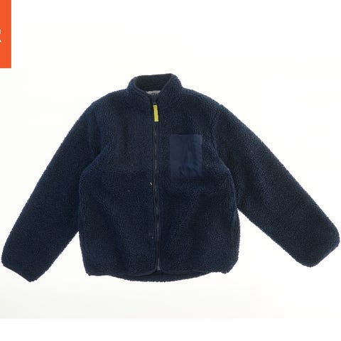 Børne fleecejakke i grøn farve med en lynlås foran. Jakken har en struktur som simulerer et teddy-agtigt look. Der er en lomme foran, hvor der også er placeret et mærke med brandnavnet Resteröds.