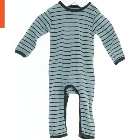 Heldragt med lange ærmer og ben. Den er grå med et mønster, der viser grønne og brune skovmotiver, herunder træer og røde ræve. Dragten har ribkanter ved halsen, ærmerne og benene. Der er trykknapper ved halsen og benene for nem åbning og lukning.